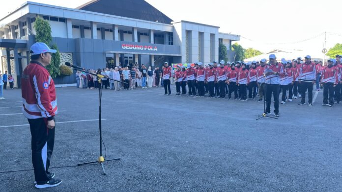 Bengkulu – Gubernur Bengkulu, Helmi Hasan, melalui Asisten I Bidang Pemerintahan dan Kesejahteraan Rakyat, Khairil Anwar, memimpin apel pagi bersama di lingkungan Kantor Gubernur Bengkulu yang dirangkaikan dengan pelepasan resmi kontingen Provinsi Bengkulu untuk mengikuti Pekan Olahraga Pelajar Nasional (POPNAS) dan Pekan Paralimpik Pelajar Nasional (Peparpenas) XI Tahun 2025, Jumat (31/10), di Lapangan Kantor Gubernur Bengkulu.