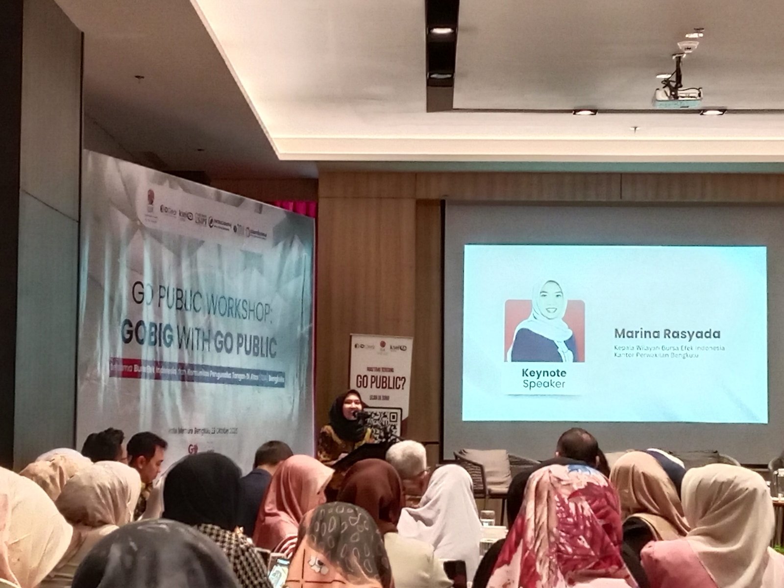 ‎Bengkulu — Bursa Efek Indonesia (BEI) Kantor Perwakilan Bengkulu bersama Komunitas Tangan Di Atas (TDA) Bengkulu, PT IDEA Indonesia Akademi Tbk, dan PT Phintraco Sekuritas menggelar kegiatan Go Public Workshop bertajuk “Go Big With Go Public”. Acara ini menjadi wadah edukatif bagi para pelaku usaha mikro, kecil, dan menengah (UMKM) di Bengkulu untuk memahami lebih dalam mengenai mekanisme pencatatan saham di pasar modal dan peluang pendanaan melalui go public.