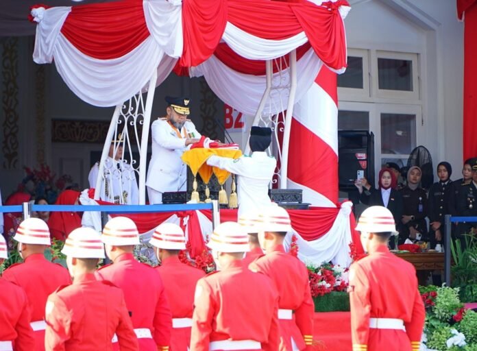 Bengkulu – Di bawah langit pagi yang cerah, Sang Merah Putih berkibar gagah di Lapangan Balai Raya Semarak, Ahad (17/8), pada Upacara Pengibaran Bendera Merah Putih memperingati Hari Ulang Tahun (HUT) ke-80 Kemerdekaan Republik Indonesia.