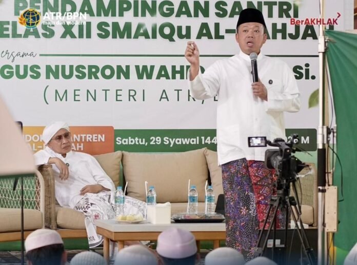 Cirebon – Menteri Agraria dan Tata Ruang/Kepala Badan Pertanahan Nasional (ATR/BPN), Nusron Wahid, memotivasi santri di Pondok Pesantren Al-Bahjah untuk mengambil peran dalam pembangunan bangsa, khususnya melalui penguasaan ilmu pengetahuan dan teknologi.