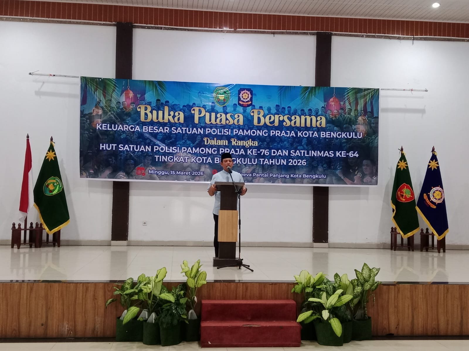 Bengkulu – Pemerintah Kota Bengkulu bersama keluarga besar Satuan Polisi Pamong Praja (Satpol PP) Kota Bengkulu menggelar kegiatan buka puasa bersama dalam rangka memperingati Hari Ulang Tahun (HUT) Satpol PP ke-76 dan Satlinmas ke-64 tingkat Kota Bengkulu. Kegiatan tersebut berlangsung di Adeva Hotel, Minggu (15/3/2026).