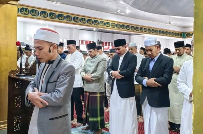 Seluma – Bupati Seluma, Teddy Rahman, S.E., M.M., bersama Forum Koordinasi Pimpinan Daerah (Forkopimda) dan jajaran Pemerintah Kabupaten Seluma melaksanakan Shalat Idul Fitri 1447 Hijriah di Masjid Baitul Falihin, Sabtu (21/3/2026).
