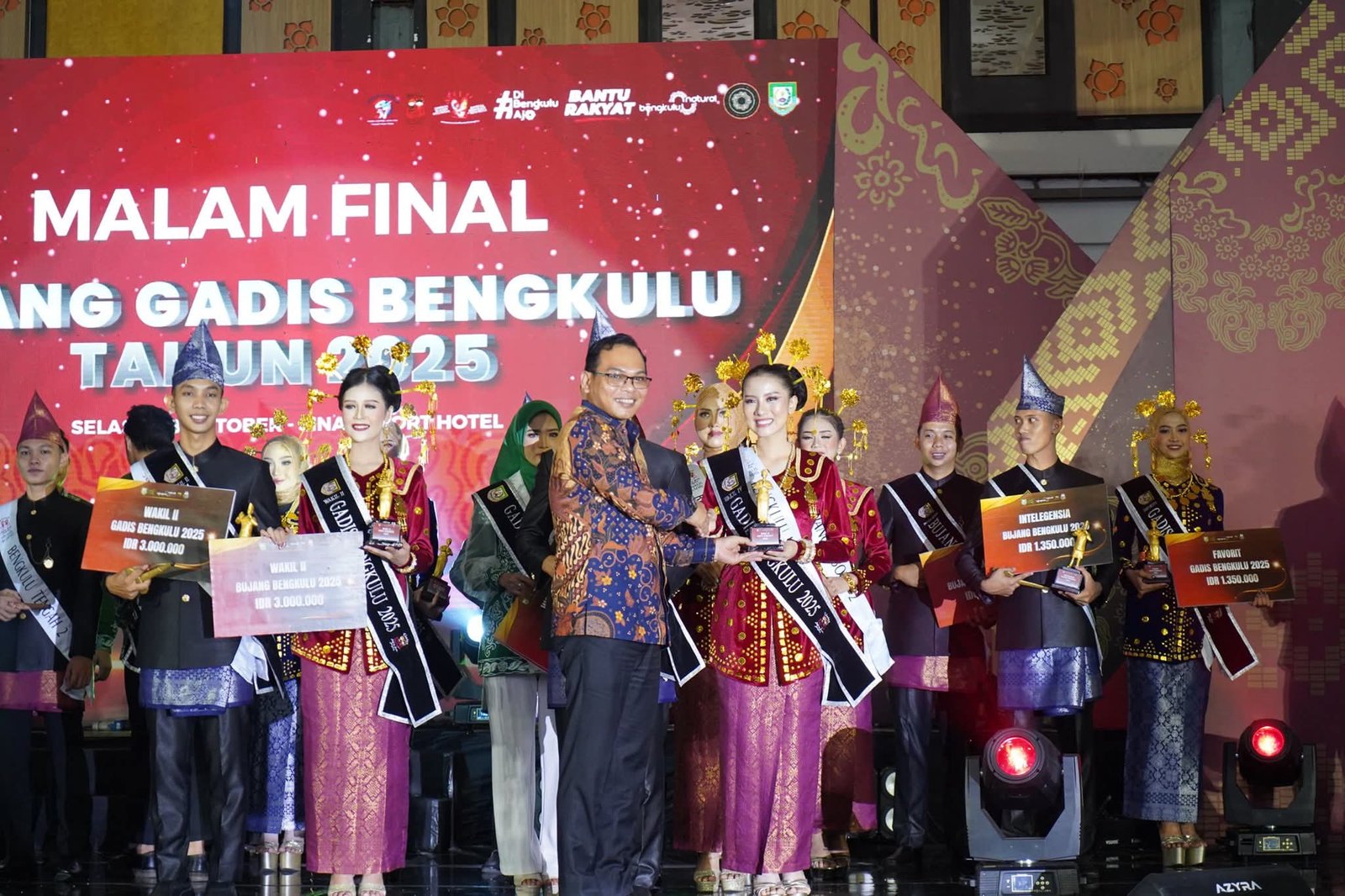 “Malam ini kita bersama menyaksikan final Bujang Gadis Bengkulu yang diikuti seluruh kabupaten/kota se-Provinsi Bengkulu. Kabupaten Seluma mengutus tiga perwakilan, yaitu Arbie Chandra, Alifah Salsabilah, dan Rolan Vanika. Alhamdulillah, ketiganya berhasil meraih prestasi gemilang,” ungkapnya.