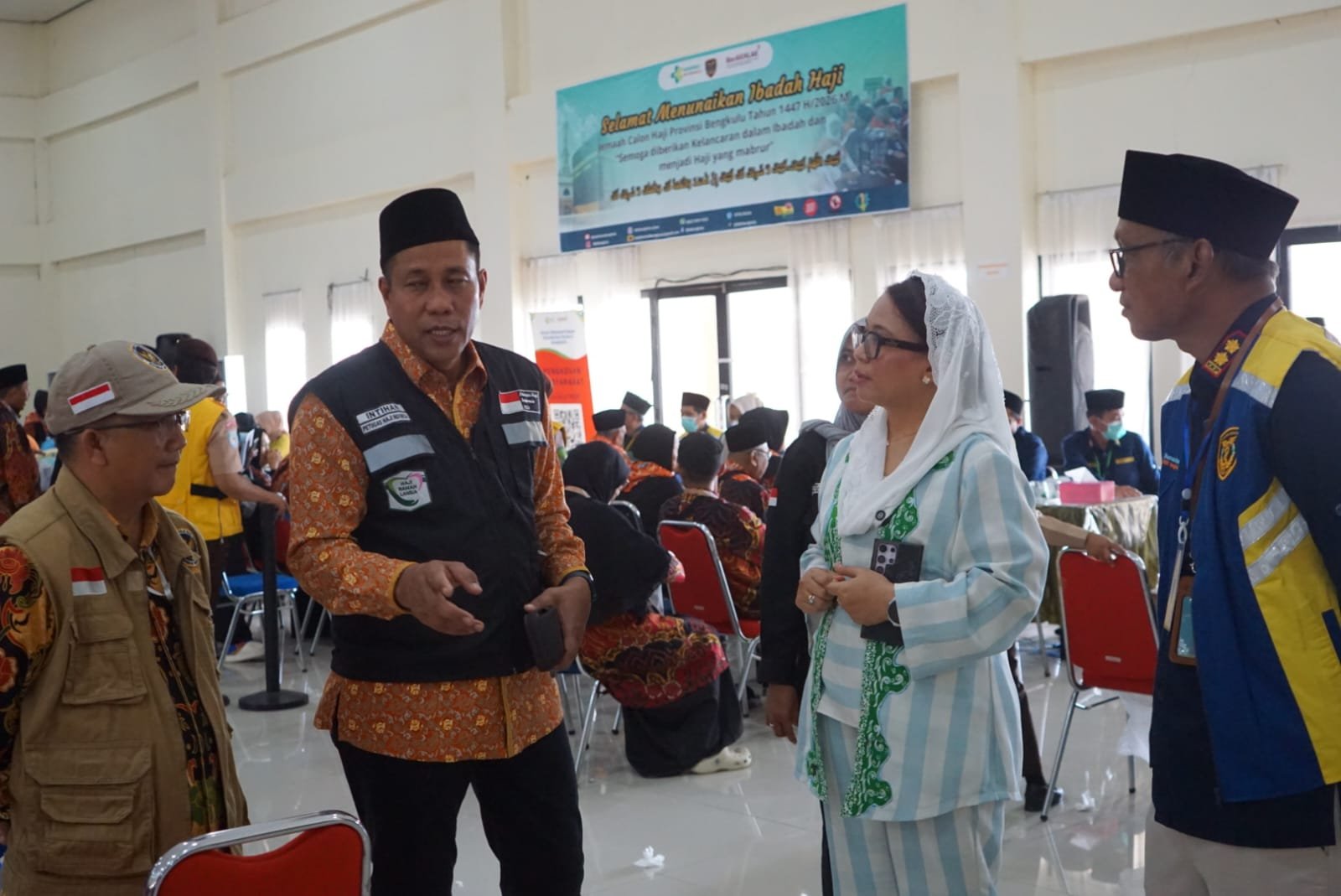 Bengkulu – Anggota DPD RI Dapil Bengkulu, Apt. Destita Khairilisani, S. Farm., MSM., melakukan kunjungan kerja ke Asrama Haji Bengkulu untuk meninjau proses transit calon jemaah haji kloter pertama Bengkulu yang tergabung dalam kloter dua Embarkasi Padang.