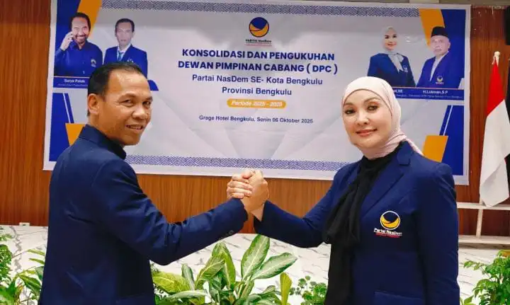 Bengkulu – Dewan Pimpinan Wilayah (DPW) Partai NasDem Provinsi Bengkulu menggelar konsolidasi dan pengukuhan Dewan Pimpinan Cabang (DPC) se-Kota Bengkulu, Senin (6/10/2025). Kegiatan yang berlangsung di Ballroom Grage Hotel Bengkulu ini menjadi langkah awal restrukturisasi organisasi partai menuju Pemilu 2029.
