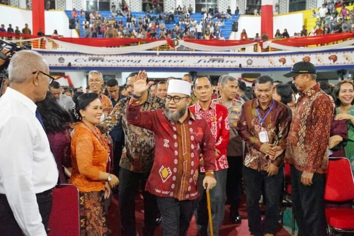 Bengkulu – Gubernur Bengkulu Helmi Hasan menghadiri Perayaan Natal Oikoumene 2025 yang digelar di Gedung Serba Guna (GSG) Universitas Bengkulu, Kamis (8/1/2026). Kehadiran Gubernur didampingi Kepala Kejaksaan Tinggi Bengkulu Victor Antonius Saragih Sidabutar, yang juga menjabat sebagai Ketua Panitia Perayaan Natal Oikoumene 2025.