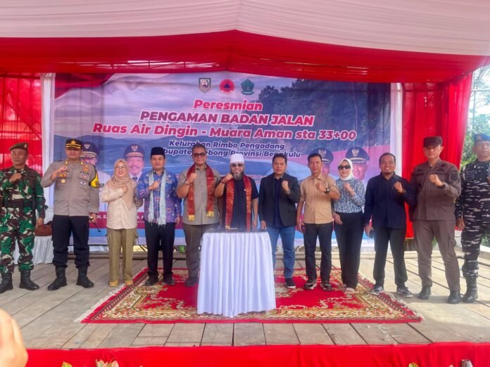 Lebong — Gubernur Bengkulu H. Helmi Hasan bersama jajaran Pemerintah Provinsi Bengkulu melaksanakan kunjungan kerja ke Kabupaten Lebong, Sabtu (7/2/2026), dalam rangka meresmikan Pembangunan Infrastruktur Pasca Bencana Provinsi Bengkulu Tahun 2025. Infrastruktur yang diresmikan berupa pengamanan badan jalan atau dinding pelapis yang berlokasi di Kelurahan Rimbo Pengadang, Kecamatan Rimbo Pengadang.