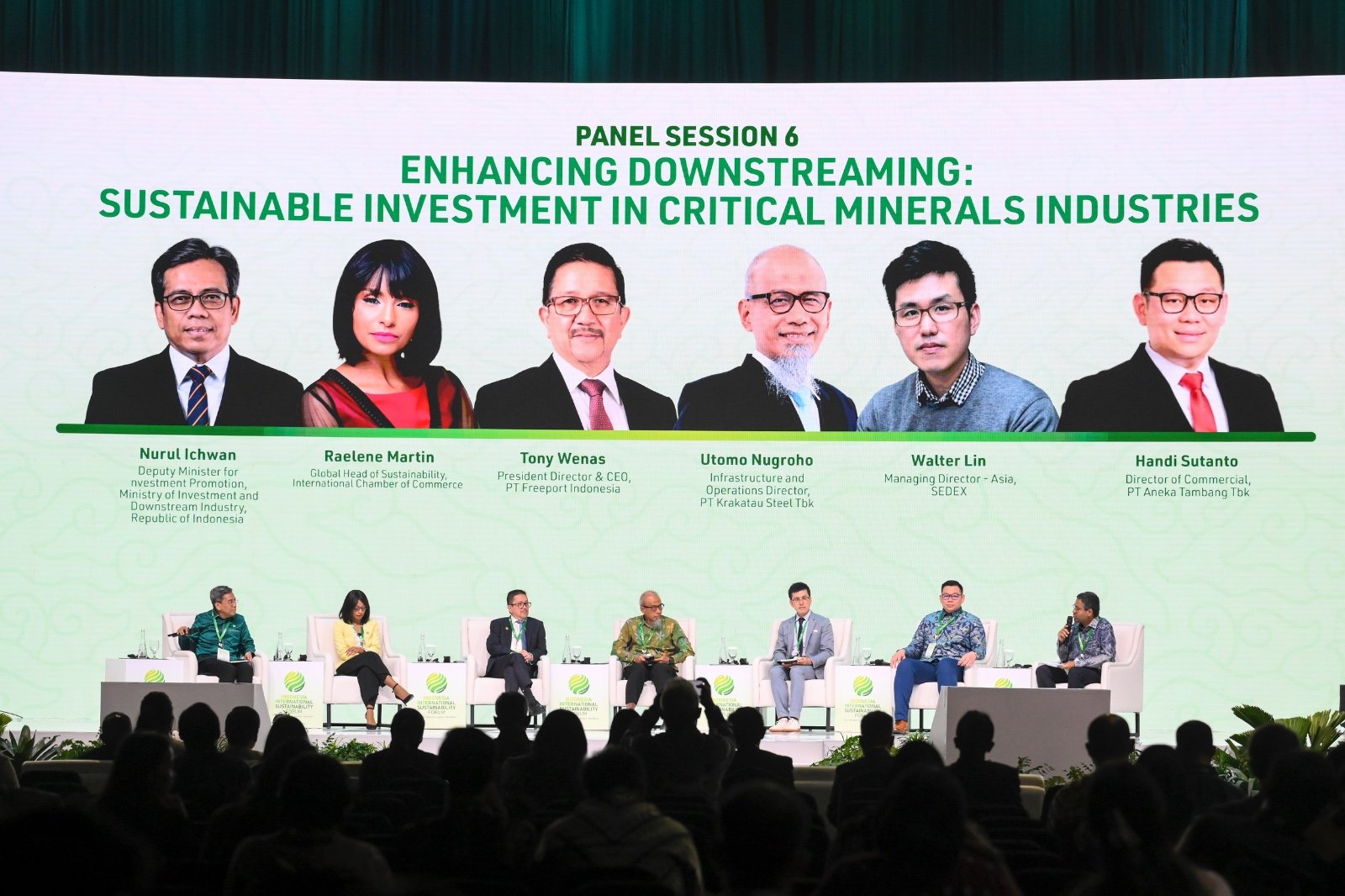Panel ini menghadirkan Nurul Ichwan, Deputi Bidang Promosi Penanaman Modal, Kementerian Investasi dan Hilirisasi/BKPM; Raelene Martin, Global Head of Sustainability, International Chamber of Commerce; Tony Wenas, CEO PT Freeport Indonesia; Utomo Nugroho, Direktur Infrastruktur dan Operasi PT Krakatau Steel; serta Walter Lin, Managing Director Asia, SEDEX. Diskusi dimoderatori oleh Ashwin Balasubramanian dari McKinsey & Company.