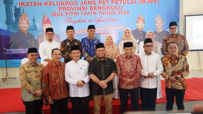 Bengkulu – Ikatan Keluarga Jang Pat Petulai (IKJPP) Provinsi Bengkulu menyalurkan santunan kepada anak yatim/piatu dalam kegiatan Halal Bihalal yang digelar di Balai Adat IKJPP, Kamis (16/4/2026).
