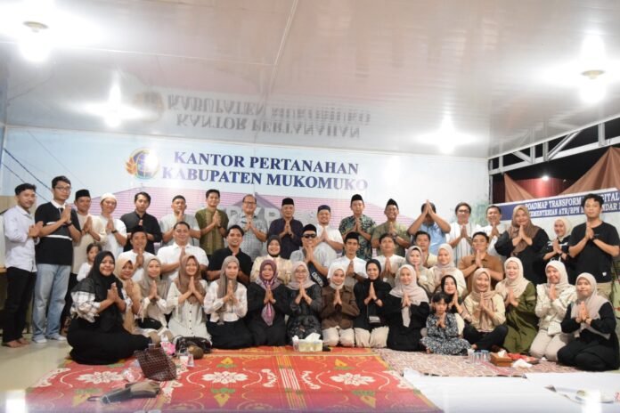 Mukomuko – Kantor Pertanahan Kabupaten Mukomuko menggelar kegiatan buka puasa bersama yang diikuti oleh seluruh pegawai di lingkungan kantor tersebut, Kamis (12/3/2026). Kegiatan yang berlangsung di Aula Kantor Pertanahan Kabupaten Mukomuko itu menjadi momentum untuk mempererat silaturahmi dan kebersamaan antarpegawai.