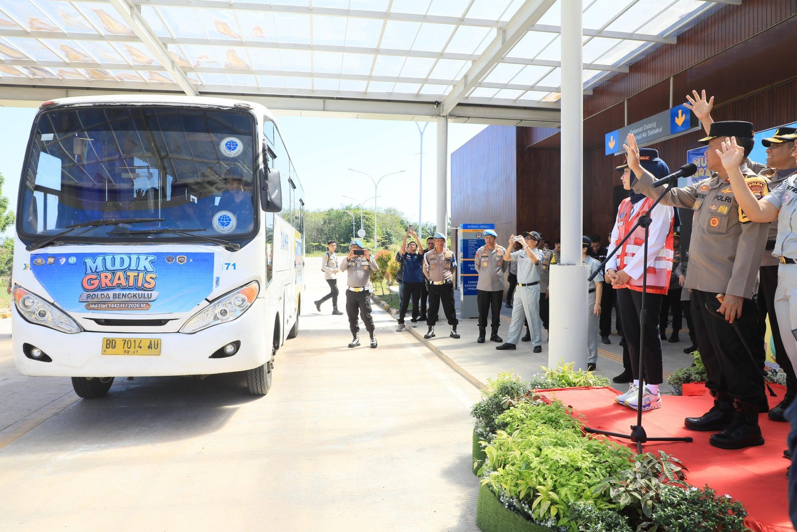 Bengkulu – Suasana haru dan penuh kebahagiaan mewarnai pelepasan program Mudik Gratis Operasi Ketupat 2026 yang dipimpin langsung oleh Kapolda Bengkulu, Irjen Pol. Mardiyono, S.I.K., M.Si., di Terminal Regional Air Sebakul, Kota Bengkulu, Rabu (18/3/2026) pagi.