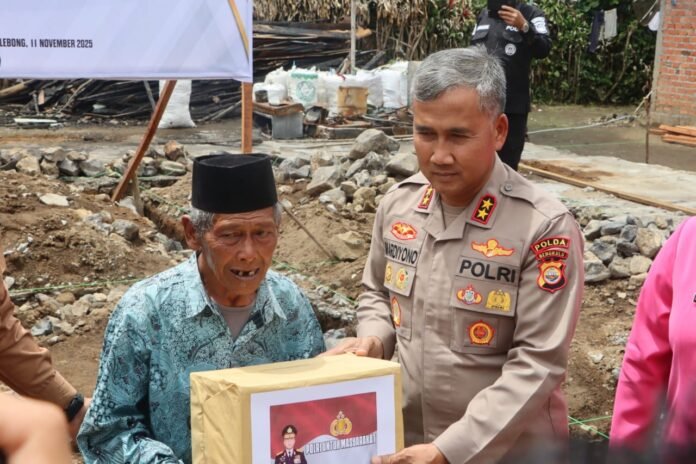 Rejang Lebong – Kapolda Bengkulu Irjen Pol. Mardiyono, S.I.K., M.Si. memimpin langsung kegiatan ground breaking atau peletakan batu pertama program bedah rumah ke-62 dan bakti sosial Polda Bengkulu di Desa Karang Jaya, Kecamatan Selupu Rejang, Kabupaten Rejang Lebong, Selasa (11/11/2025).