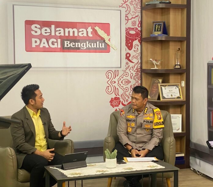 Bengkulu – Karo Ops Polda BENGKULU, Kombes Pol Pontjo Soediantoko, S.I.K., M.H., menjadi narasumber utama dalam acara dialog interaktif “Selamat Pagi BENGKULU” di RBTV pagi ini (4/12).