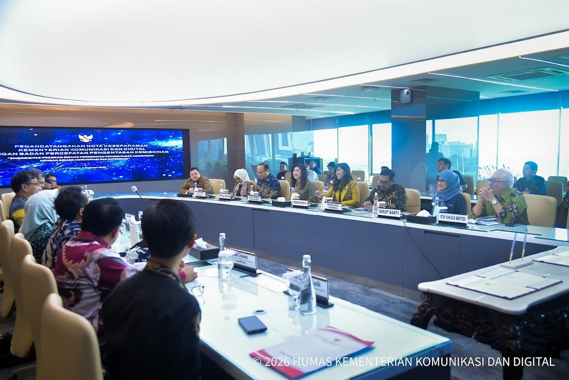 “Kami siap berkolaborasi dengan Badan Percepatan Pengentasan Kemiskinan karena hal ini merupakan salah satu perhatian Bapak Presiden. Kita akan pilih prioritas kerja sama dalam program-program yang langsung dirasakan manfaatnya oleh masyarakat,” ujar Menteri Komunikasi dan Digital Meutya Hafid pada acara Penandatanganan Nota Kesepahaman antara Kemkomdigi dan BP Taskin bertajuk “Sinergitas Program Bidang Percepatan Pengentasan Kemiskinan dengan Bidang Komunikasi dan Informasi” di Kantor Kemkomdigi, Jakarta Pusat, Rabu (4/2/2026).