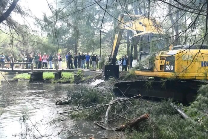 Pengerukan sedimen ini untuk menghilangkan endapan yang membuat saluran sungai dangkal, menjaga kelancaran aliran air, dan mencegah banjir.