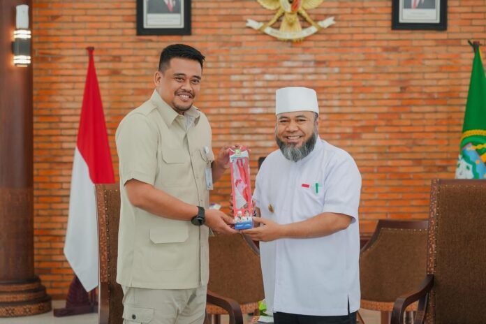 Sumatera Utara – Gubernur Sumatera Utara (Sumut), Muhammad Bobby Afif Nasution, menerima kunjungan Gubernur Bengkulu, Helmi Hasan, di Anjungan Lantai 9, Kantor Gubernur Sumut, Jalan Diponegoro Nomor 30, Medan, Selasa (14/10/2025). Pertemuan tersebut membahas peluang kolaborasi antardaerah dalam memperkuat pembangunan di Pulau Sumatera.