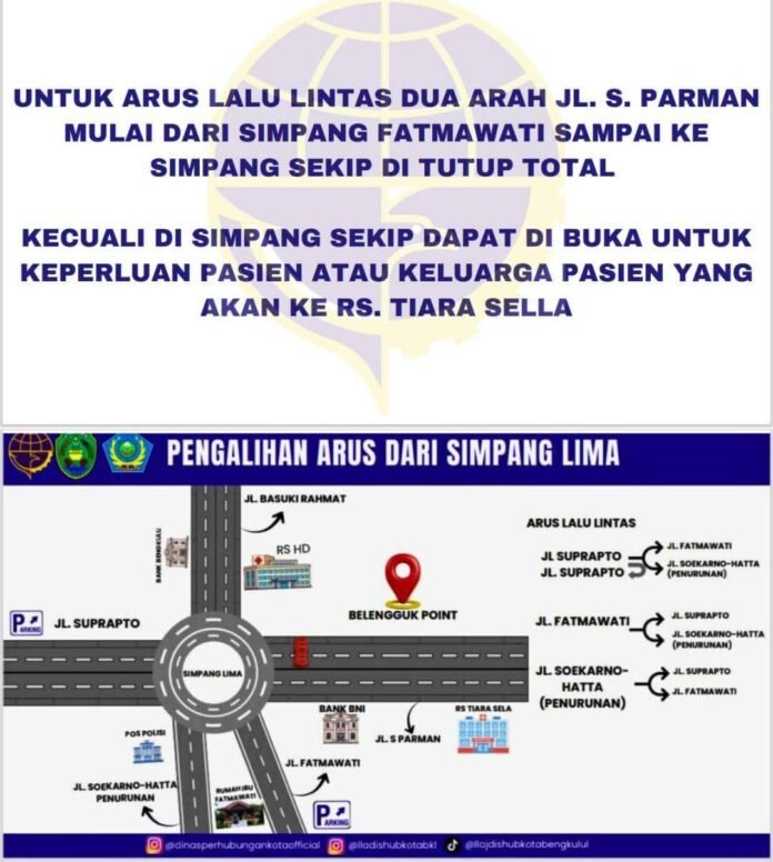 Bengkulu – Pemerintah Kota Bengkulu memberlakukan rekayasa lalu lintas di sepanjang Jalan S. Parman guna menyukseskan peresmian (launching) Belungguk Point, yang dijadwalkan berlangsung pada Sabtu malam, 27 Desember 2025. Kebijakan ini diterapkan untuk mengantisipasi lonjakan pengunjung di kawasan yang diproyeksikan menjadi ikon wisata baru kebanggaan masyarakat Bengkulu.