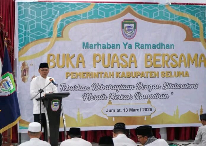 Seluma – Pemerintah Kabupaten Seluma menggelar buka puasa bersama di Gedung Daerah Serasan Seijoan, Jumat (13/3/2026). Kegiatan ini dimanfaatkan sebagai ruang memperkuat komunikasi dan kebersamaan antar jajaran pemerintah daerah selama bulan Ramadan.