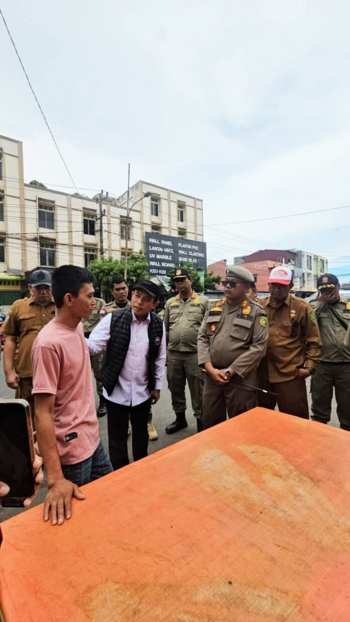 Bengkulu — Pemerintah Kota Bengkulu melalui Satuan Polisi Pamong Praja (Satpol PP) melakukan penertiban bangunan yang berdiri di atas trotoar sepanjang Jalan Semangka, kawasan Pasar Panorama, Selasa (9/12/2025). Penertiban dipimpin langsung Kasat Pol PP Kota Bengkulu, Sahat Marulitua Situmorang, dan disaksikan Walikota Bengkulu, Dedy Wahyudi.