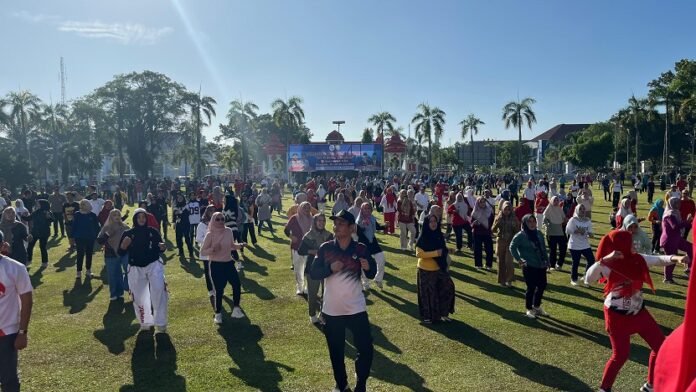 Bengkulu – Penjabat Sekretaris Daerah Provinsi Bengkulu, Herwan Antoni, mengikuti kegiatan senam bersama dan donor darah yang diselenggarakan oleh Palang Merah Indonesia (PMI) Provinsi Bengkulu, Jumat (18/7/2025). Kegiatan tersebut berlangsung di Lapangan Upacara Kantor Gubernur Bengkulu.