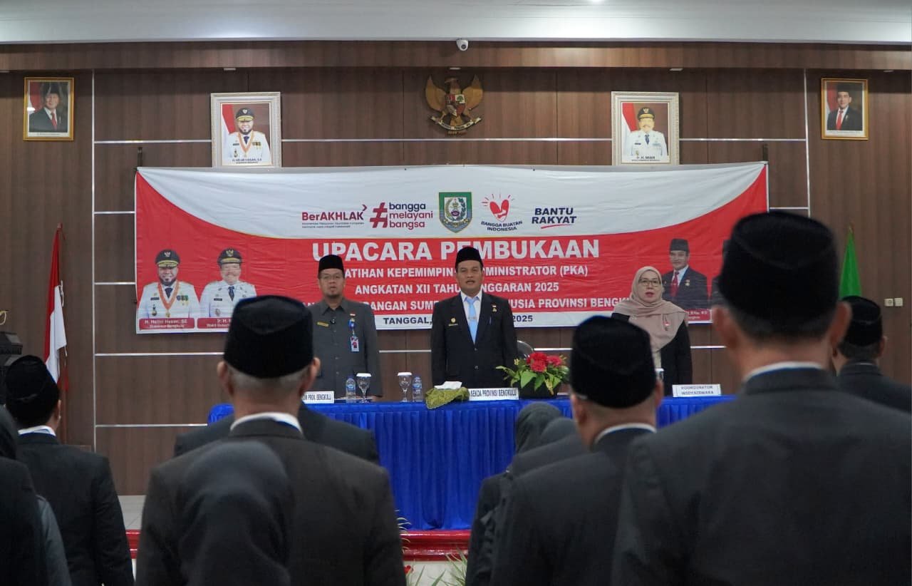 Hal tersebut ditegaskan Penjabat Sekretaris Daerah (Pj Sekda) Provinsi Bengkulu, Herwan Antoni, saat menjadi inspektur upacara pembukaan Pelatihan Kepemimpinan Administrator (PKA) Angkatan XII Tahun Anggaran 2025 di Aula Merah Putih Kantor Badan Pengembangan Sumber Daya Manusia (BPSDM) Provinsi Bengkulu, Jumat (26/9).