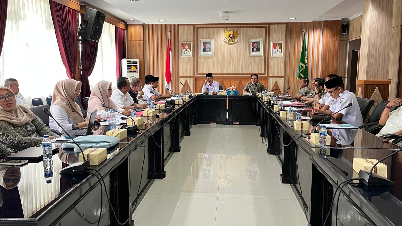 Bengkulu – Penjabat Sekretaris Daerah Provinsi (Sekdaprov) Herwan Antoni memimpin rapat koordinasi dan komunikasi implementasi strategi penguatan rekrutmen cakupan dan tingkat keaktifan peserta mencapai Universal Health Coverege Provinsi Bengkulu tahun 2025 di Ruang Rapat Merah Putih, Kantor Gubernur, Rabu (18/6/2025).