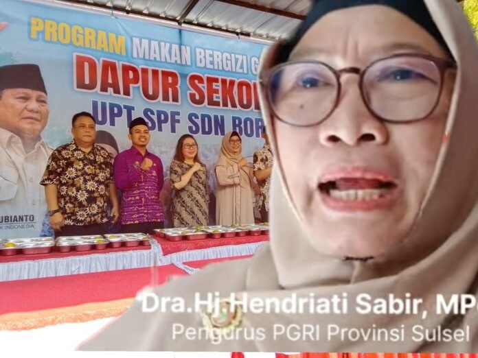 Hal ini disampaikan oleh Dra. Hj. Hendriati Sabir, M.Pd, dari Persatuan Guru Republik Indonesia (PGRI) Provinsi Sulawesi Selatan, saat menghadiri uji coba penerapan Dapur Sekolah di SDN Borong, Kecamatan Manggala, Kota Makassar, Kamis (2/10/2025).
