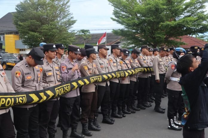 Bengkulu – Polda Bengkulu bersama Polresta Bengkulu melaksanakan pengamanan secara maksimal dalam kegiatan unjuk rasa yang digelar oleh kelompok Cipayung yang terdiri dari HMI, GMNI, dan GMKI di depan Kantor DPRD Provinsi Bengkulu, Senin (6/4/2026).