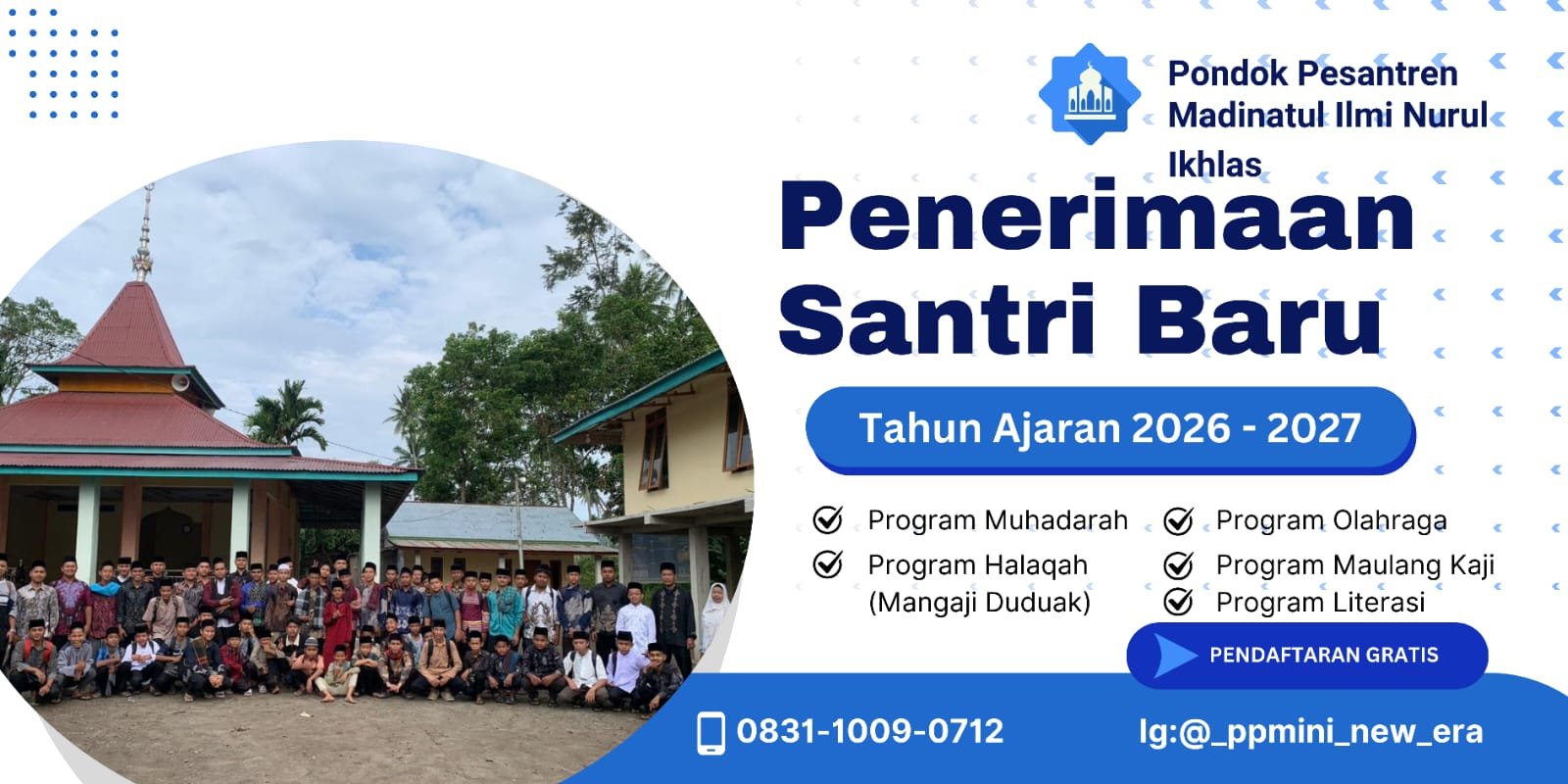 Padang Pariaman – Pondok Pesantren Madinatul Ilmi Nurul Ikhlas yang berlokasi di Korong Lubuak Aro, Nagari Tandikek, Kabupaten Padang Pariaman, resmi membuka penerimaan santri baru untuk Tahun Ajaran 2026/2027.