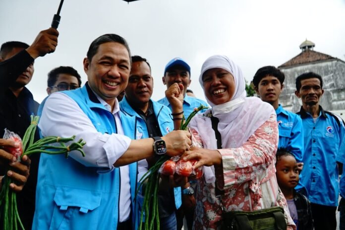 Ketua Umum Partai Gelora Anis Matta mengikuti rangkaian kirab bersama pasukan Bregada serta prosesi pembagian gunungan kepada masyarakat dan kader.
