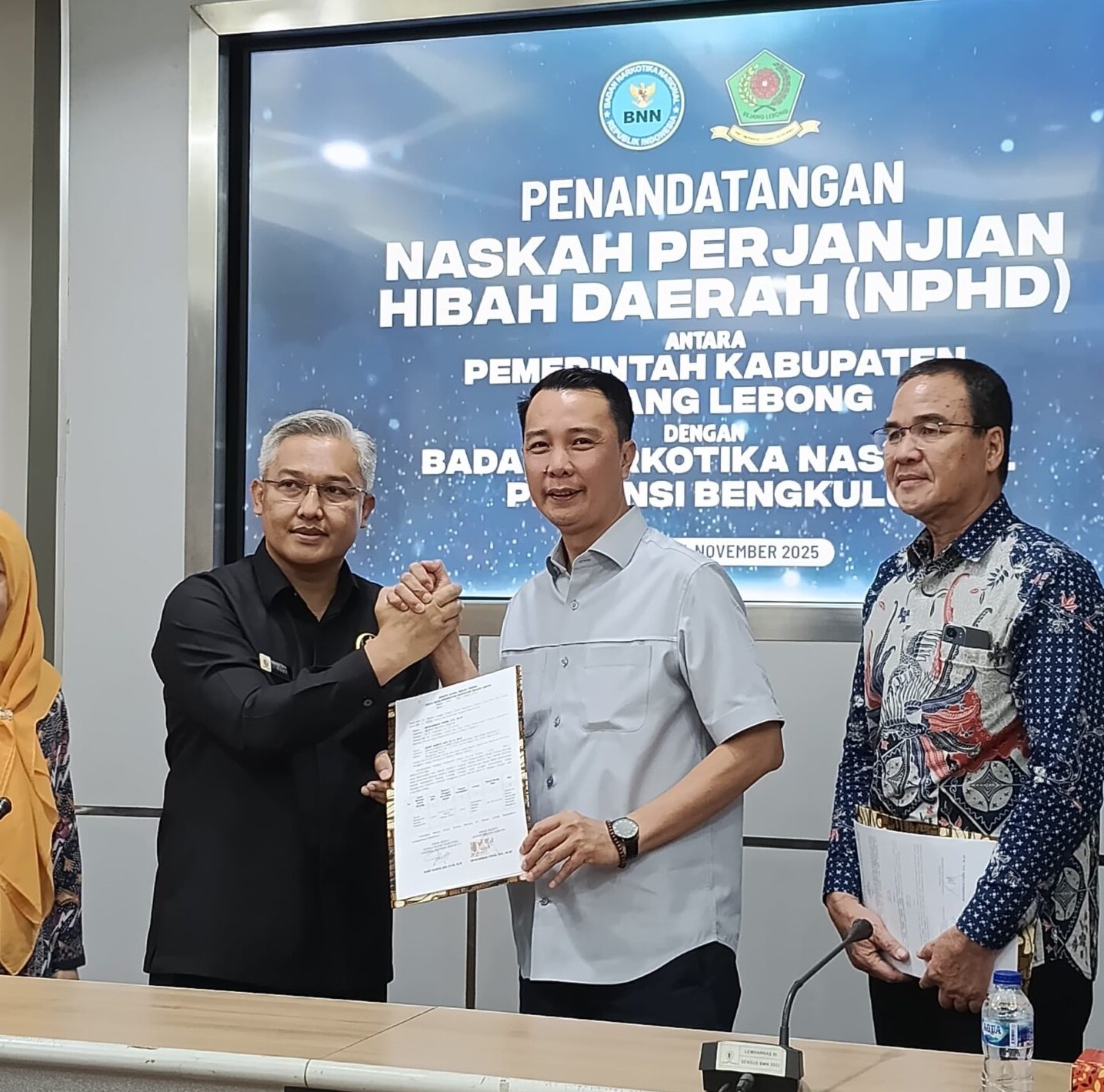 Rejang Lebong – Kabupaten Rejang Lebong dalam waktu dekat akan memiliki Kantor Badan Narkotika Nasional Kabupaten (BNNK). Langkah ini ditandai dengan penandatanganan Naskah Perjanjian Hibah Daerah (NPHD) antara Pemerintah Kabupaten Rejang Lebong dan Badan Narkotika Nasional Provinsi (BNNP) Bengkulu, Selasa (4/11/2025) di Gedung Lemhannas, Jakarta.