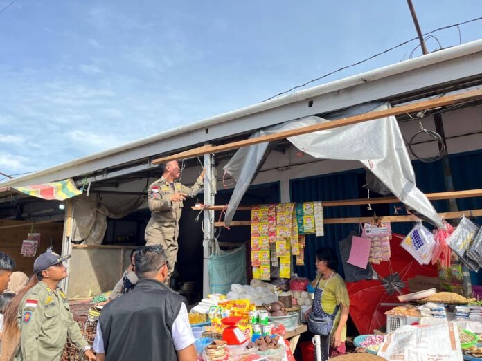 Di lapangan, petugas tampak membantu pedagang membuka terpal dan payung yang digunakan untuk berjualan di badan jalan. Langkah tersebut dilakukan secara persuasif agar pedagang bersedia kembali menempati lapak di dalam pasar.