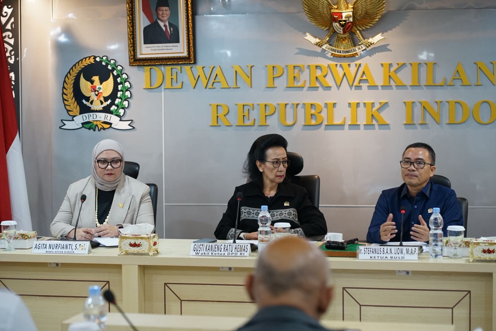 Rapat dibuka Wakil Ketua DPD RI Bidang Hukum, Politik dan Otonomi Daerah GKR Hemas dan dipimpin Ketua BULD DPD RI Stefanus BAN Liow didampingi Wakil Ketua H. Abdul Hamid dan Hj. Agitha Nurfianti, serta dihadiri perwakilan Kementerian Koperasi, Kementerian Desa dan Pembangunan Daerah Tertinggal, Kementerian Keuangan, dan Kementerian Dalam Negeri.