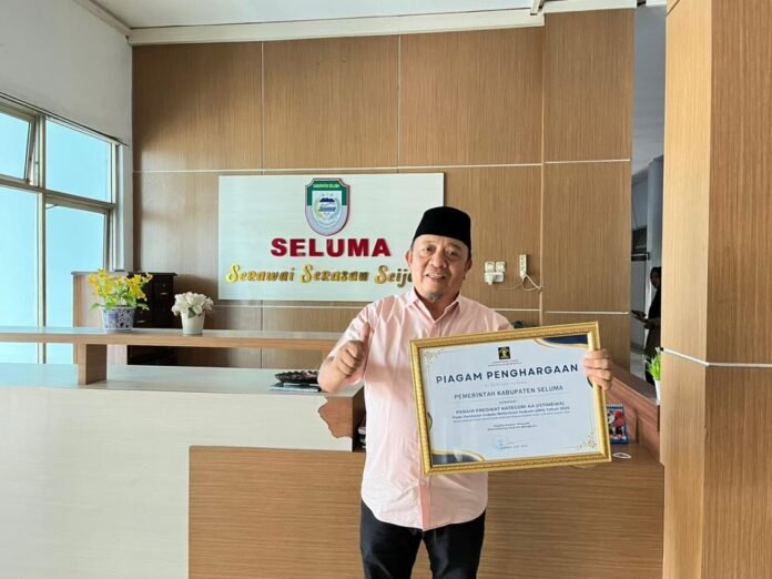 “Kami atas nama pimpinan Kantor Wilayah Kementerian Hukum Provinsi Bengkulu menyerahkan piagam penghargaan Indeks Reformasi Hukum Tahun 2025 dengan predikat Kategori AA (Istimewa). Selamat kepada Pemerintah Kabupaten Seluma atas capaian ini,” ujarnya.
