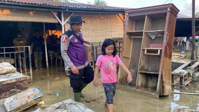 Langsa — Tim Trauma Healing Bagian Psikologi SDM Polda Aceh memberikan dukungan Psikososial Bencana Alam di wilayah Langsa, Jum’at, 5 Desember 2025.