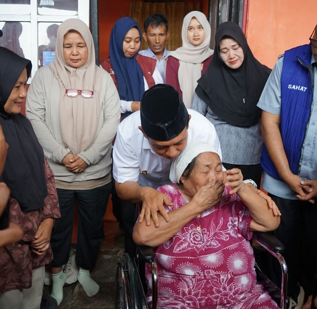 Bengkulu – Suasana haru menyelimuti kediaman Ekoni (80), warga Jl. Teratai 3 RT 02 RW 01 Kelurahan Kebun Beler, saat Walikota Bengkulu Dedy Wahyudi datang berkunjung, Jumat (11/10). Lansia yang sudah puluhan tahun lumpuh itu tak kuasa menahan tangis bahagia ketika menerima kunjungan orang nomor satu di Kota Bengkulu tersebut.