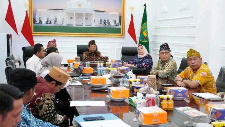Bengkulu – Wali Kota Bengkulu Dedy Wahyudi bersama Wakil Wali Kota Ronny PL Tobing memimpin rapat koordinasi terkait validasi angka kemiskinan dan stunting di Balai Kota Merah Putih, Kelurahan Pekan Sabtu, Kecamatan Selebar, Kamis (4/12/2025).