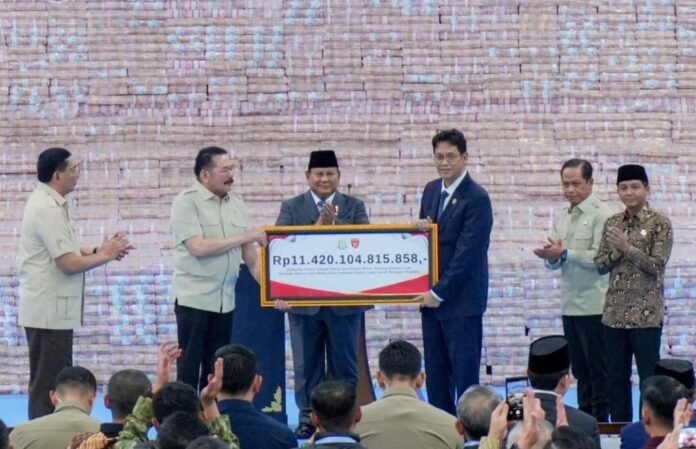 Jakarta – Wakil Menteri Agraria dan Tata Ruang/Wakil Kepala Badan Pertanahan Nasional (Wamen ATR/Waka BPN), Ossy Dermawan, menyaksikan proses penyerahan denda administratif dan penyelamatan keuangan negara serta penguasaan kembali kawasan hutan tahap VI dengan nilai Rp11.420.104.815.858 pada Jumat (10/04/2026). Capaian tersebut merupakan hasil kerja bersama Satuan Tugas Penertiban Kawasan Hutan (Satgas PKH).